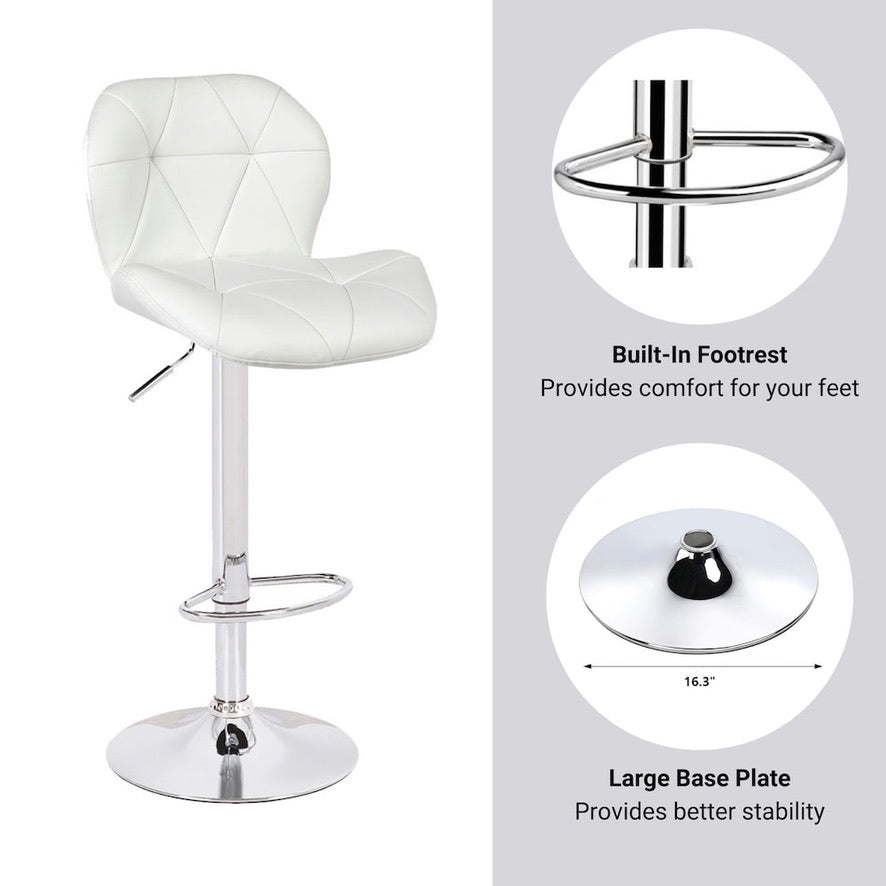 Características | Asiento acolchado con patrón de diamante, Altura ajustable, Giro de 360 grados |