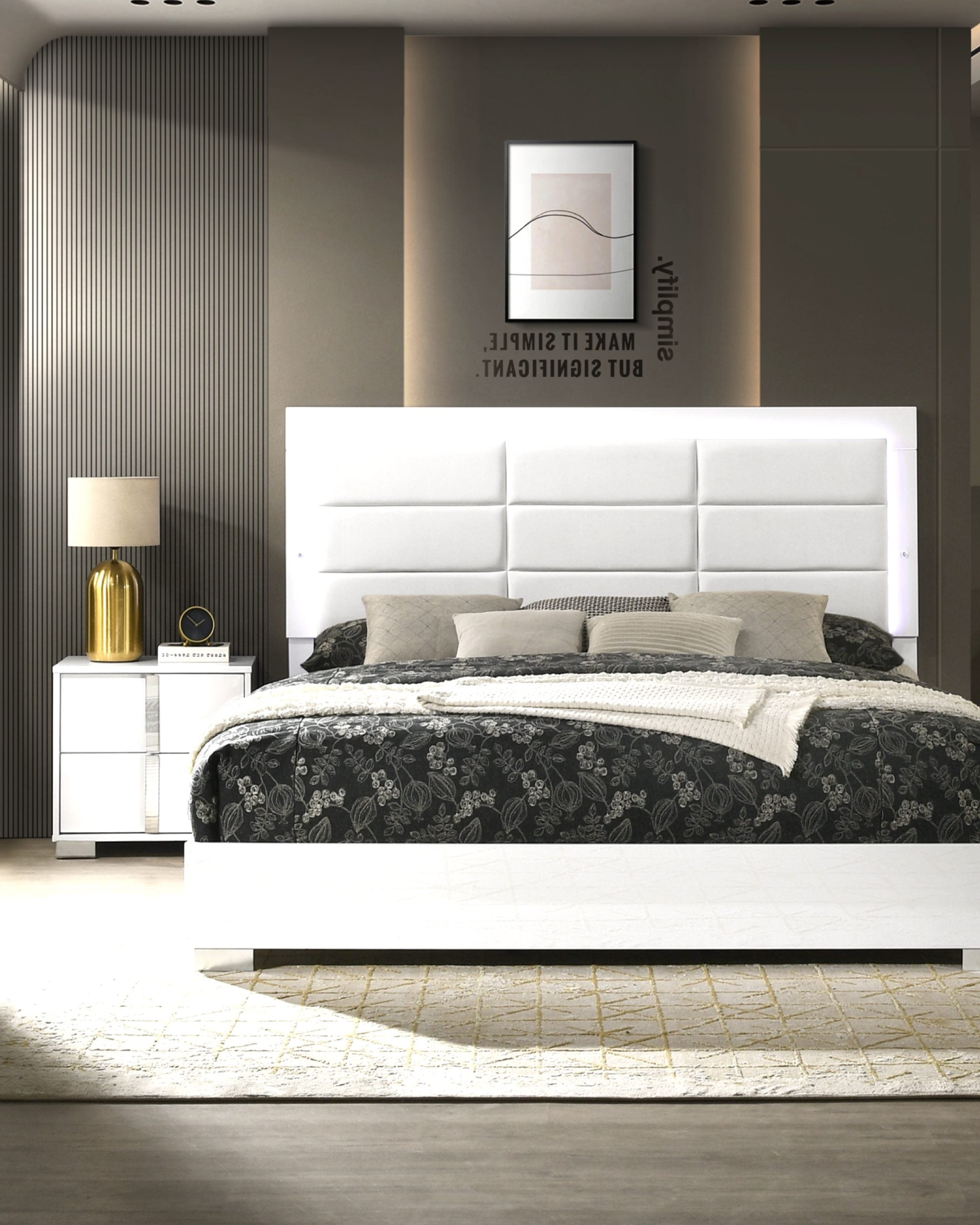 Juego de Dormitorio King Manhattan Brillo Alto Moderno con Cabecero LED