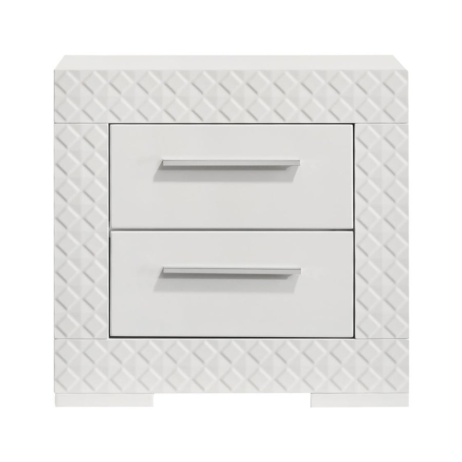 Juego de Dormitorio Queen Brooklyn Moderno con LED, Blanco Brillo y Detalles Cromados