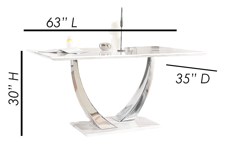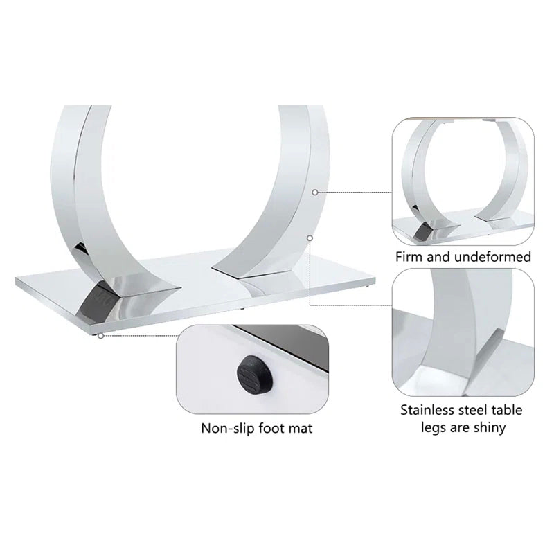 ¡Prepara tus cenas más chic con la Mesa de Comedor Beli! Su espectacular tapa de efecto mármol gris y su base cromada brillante son la combinación perfecta para deslumbrar a tus invitados. Este diseño moderno no solo es una pieza central, sino que también ofrece asiento cómodo para seis. Con un acabado de alto brillo, esta mesa es tan resistente como glamurosa, ¡lista para todas tus aventuras culinarias!