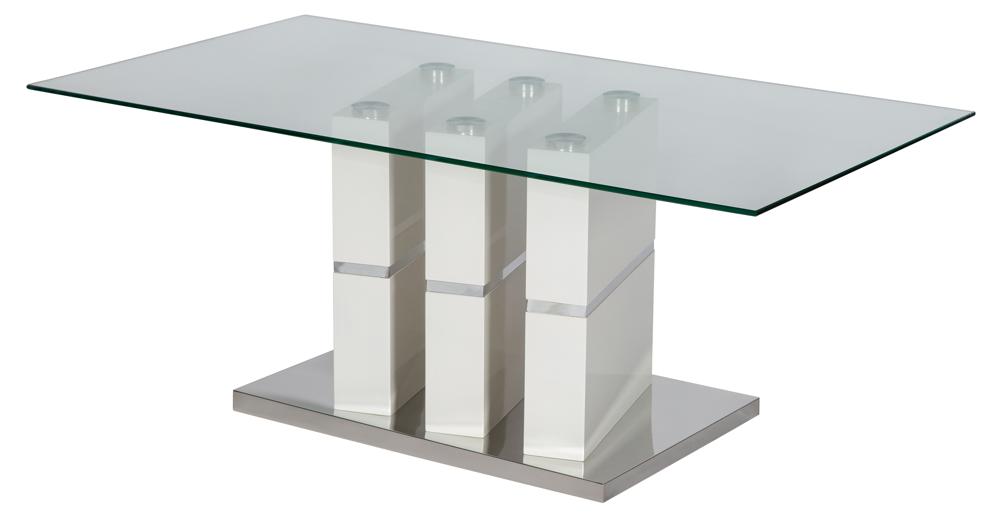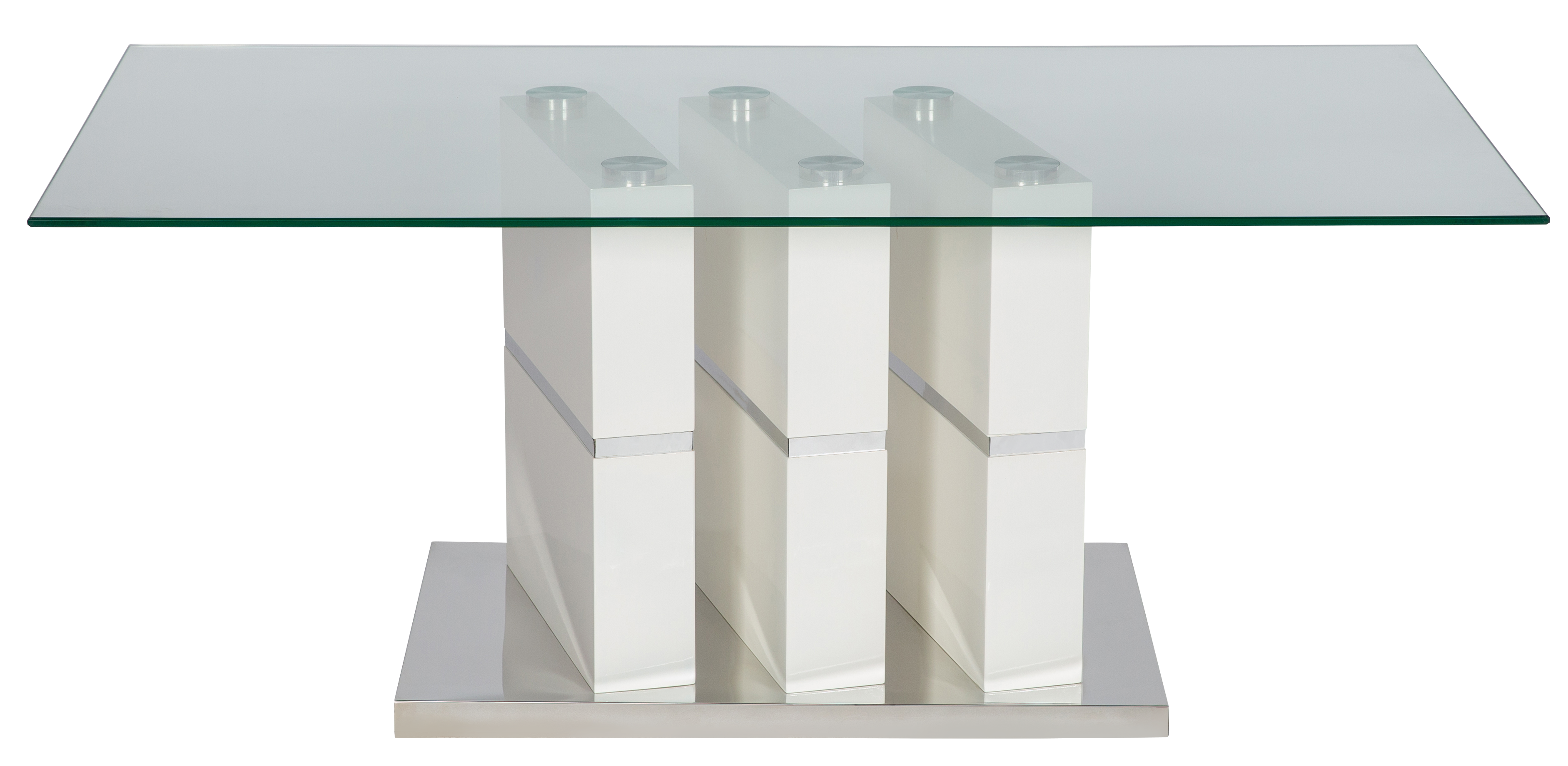 Mesa de Centro Derick: Moderna, Cristal Transparente, Base Blanca Brillante, Salón Elegante