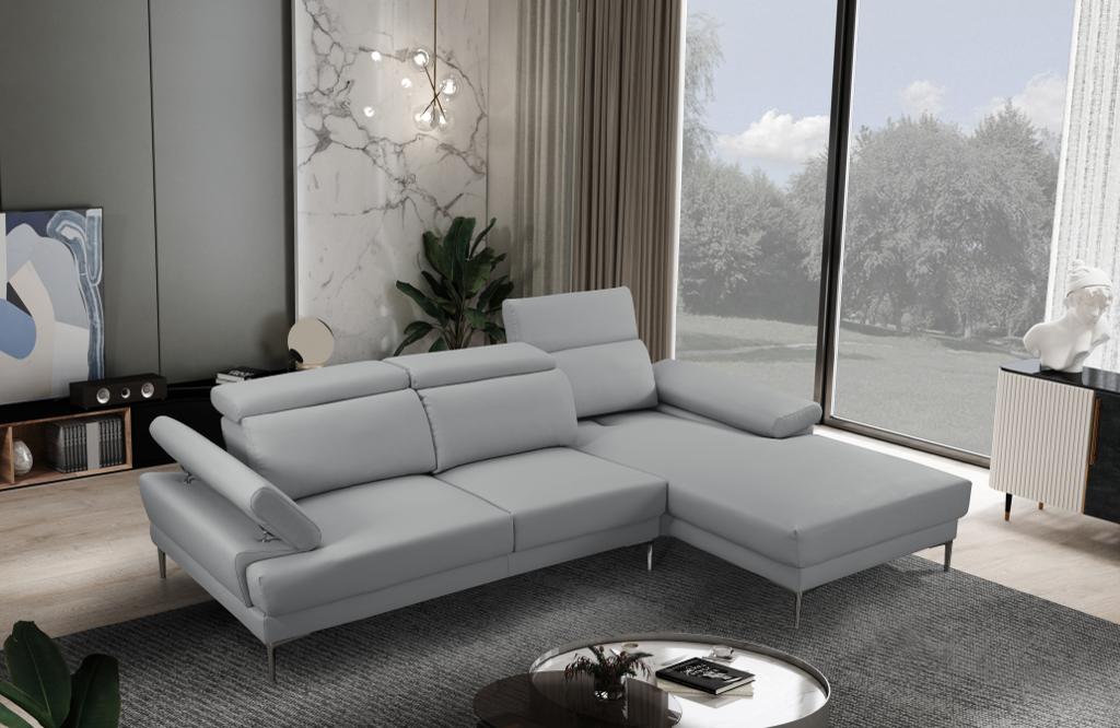 Sofá Seccional Kim Gris Derecho: Moderno, Espacioso, Piel Ecológica, Respaldo Ajustable
