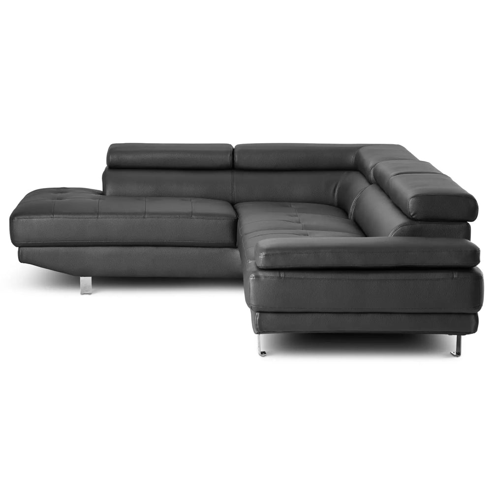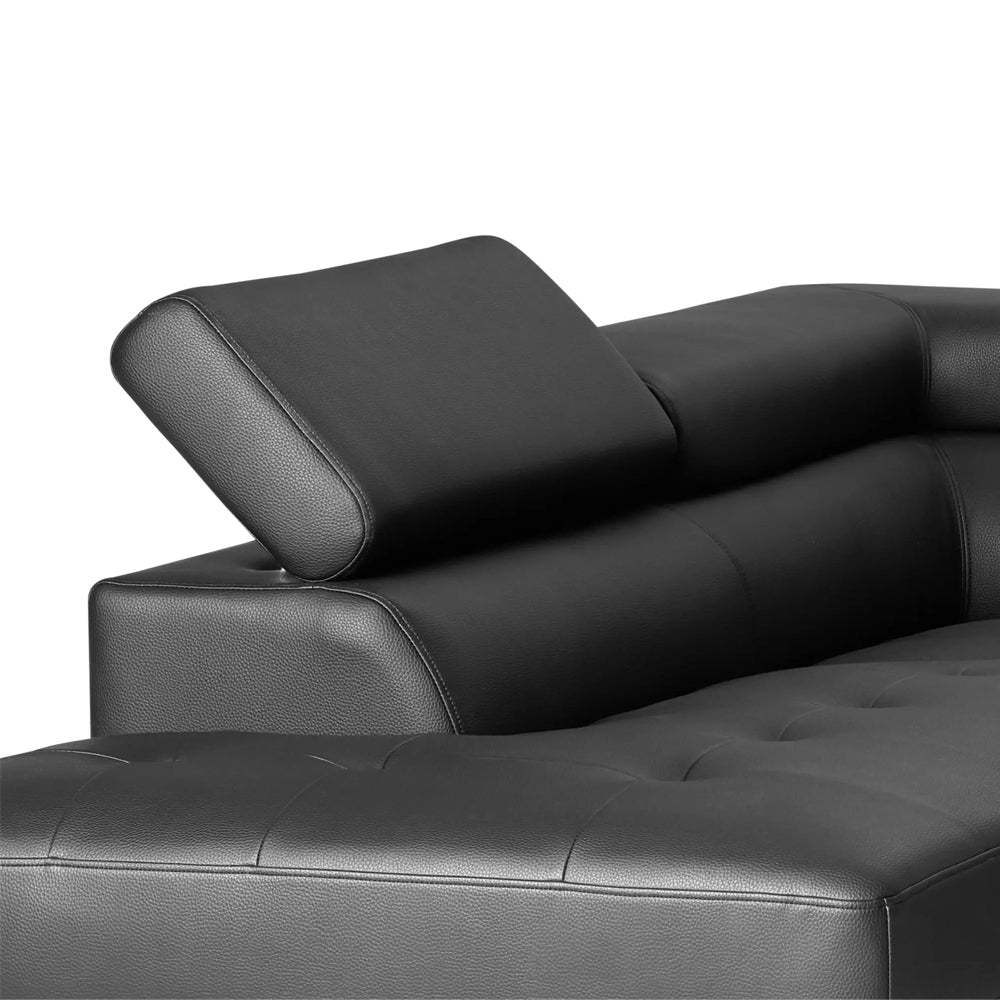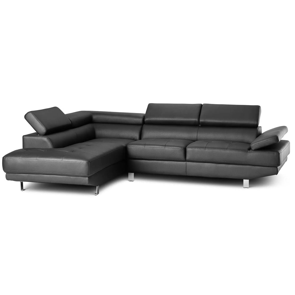 Sofá Seccional Mykonos XL Izquierdo Negro, Lujo, Confort Superior, Eco Cuero, Cromado