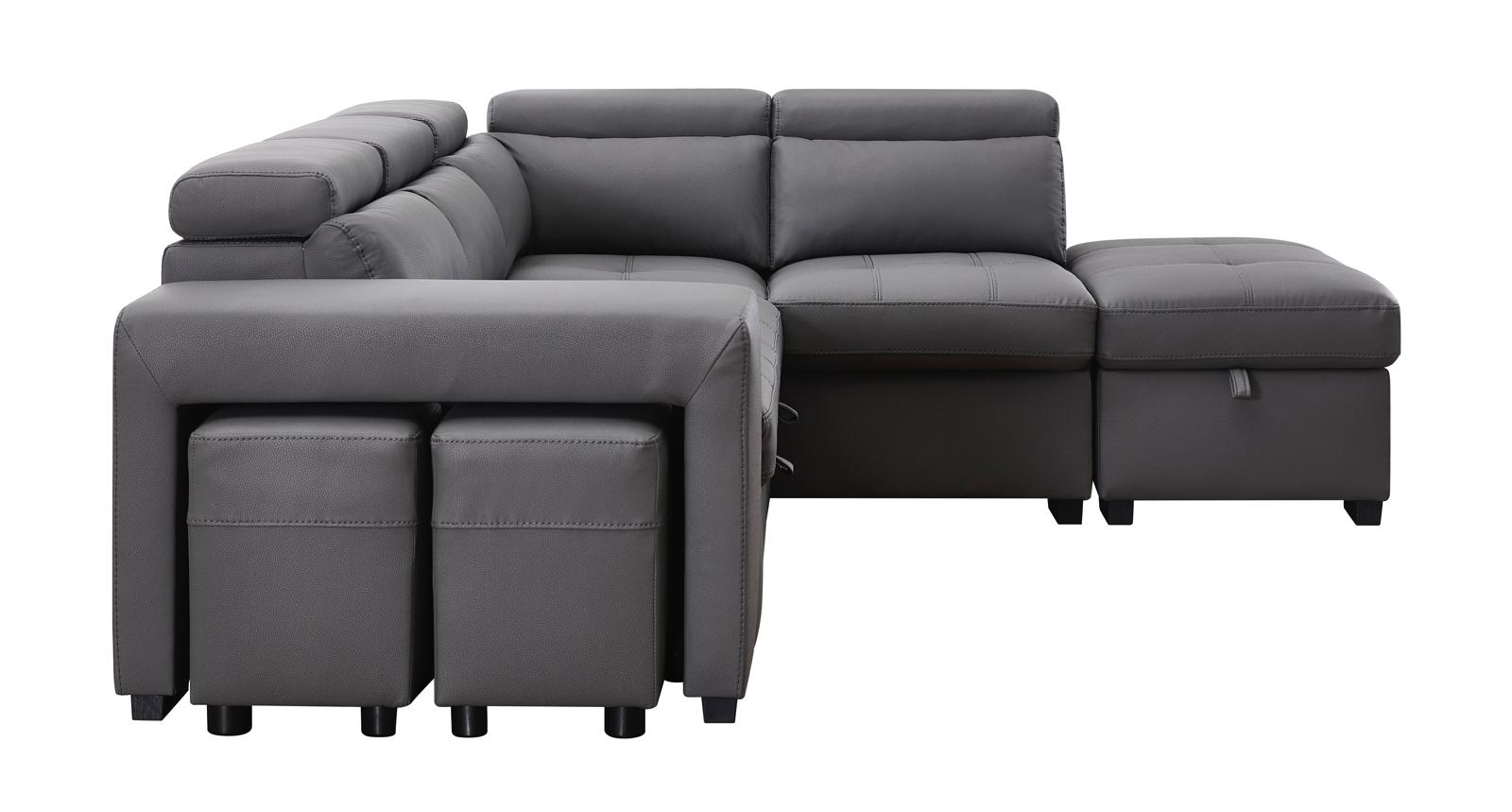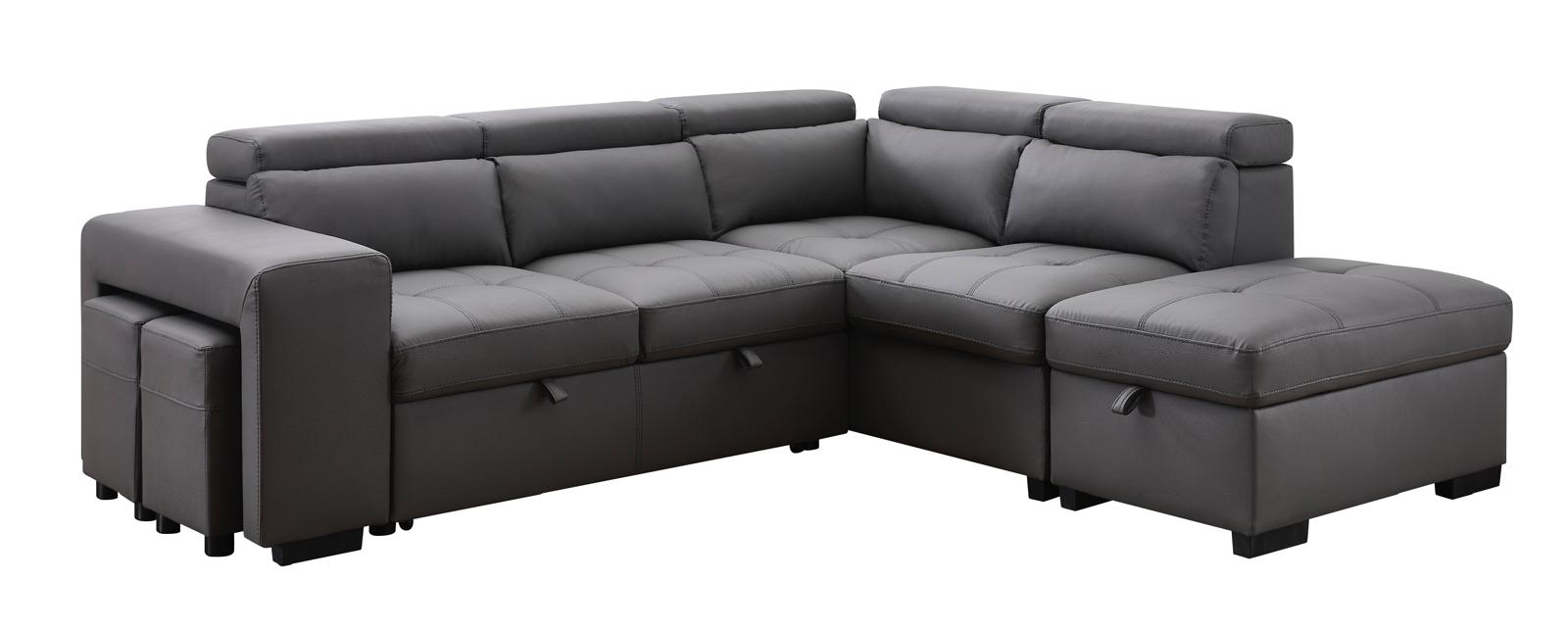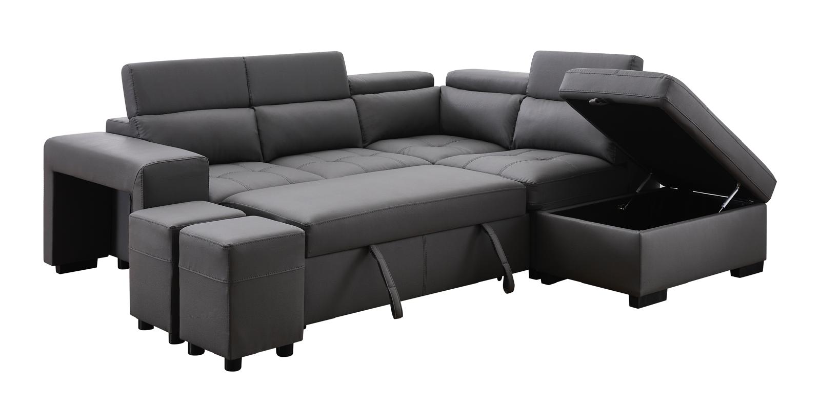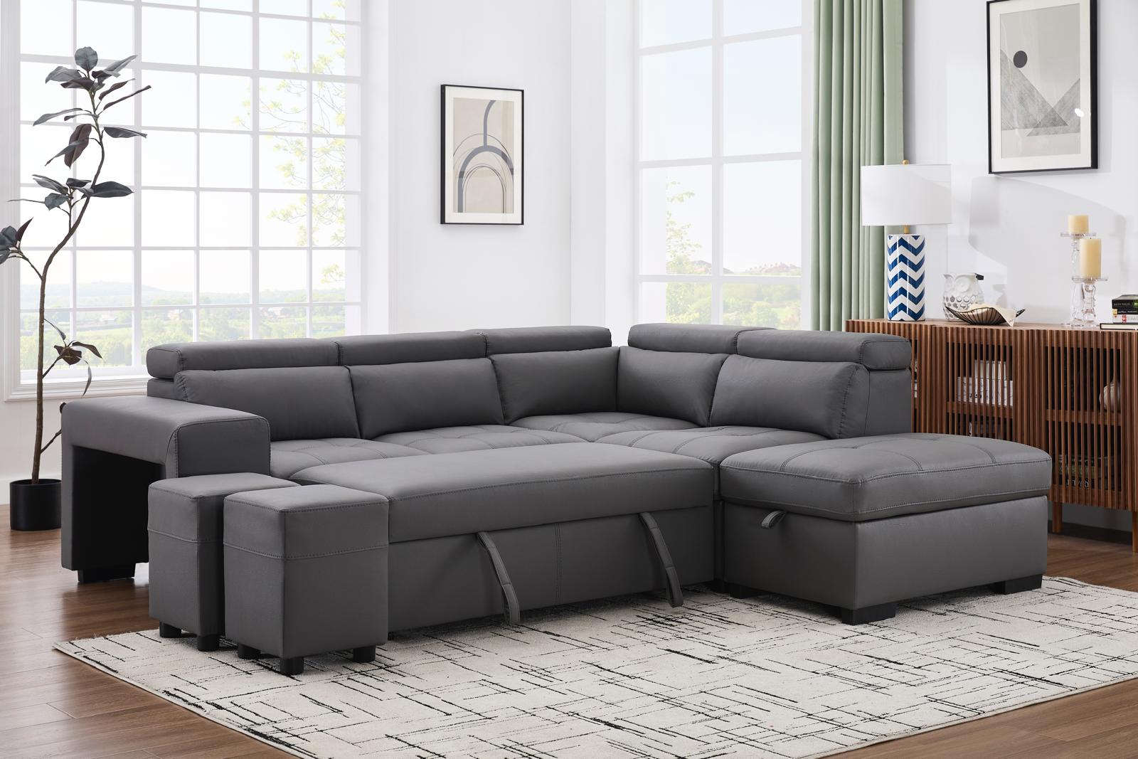 Sofá Seccional Positano Gris Izquierdo 2025 Convertible Cama Almacenamiento Asientos Extra