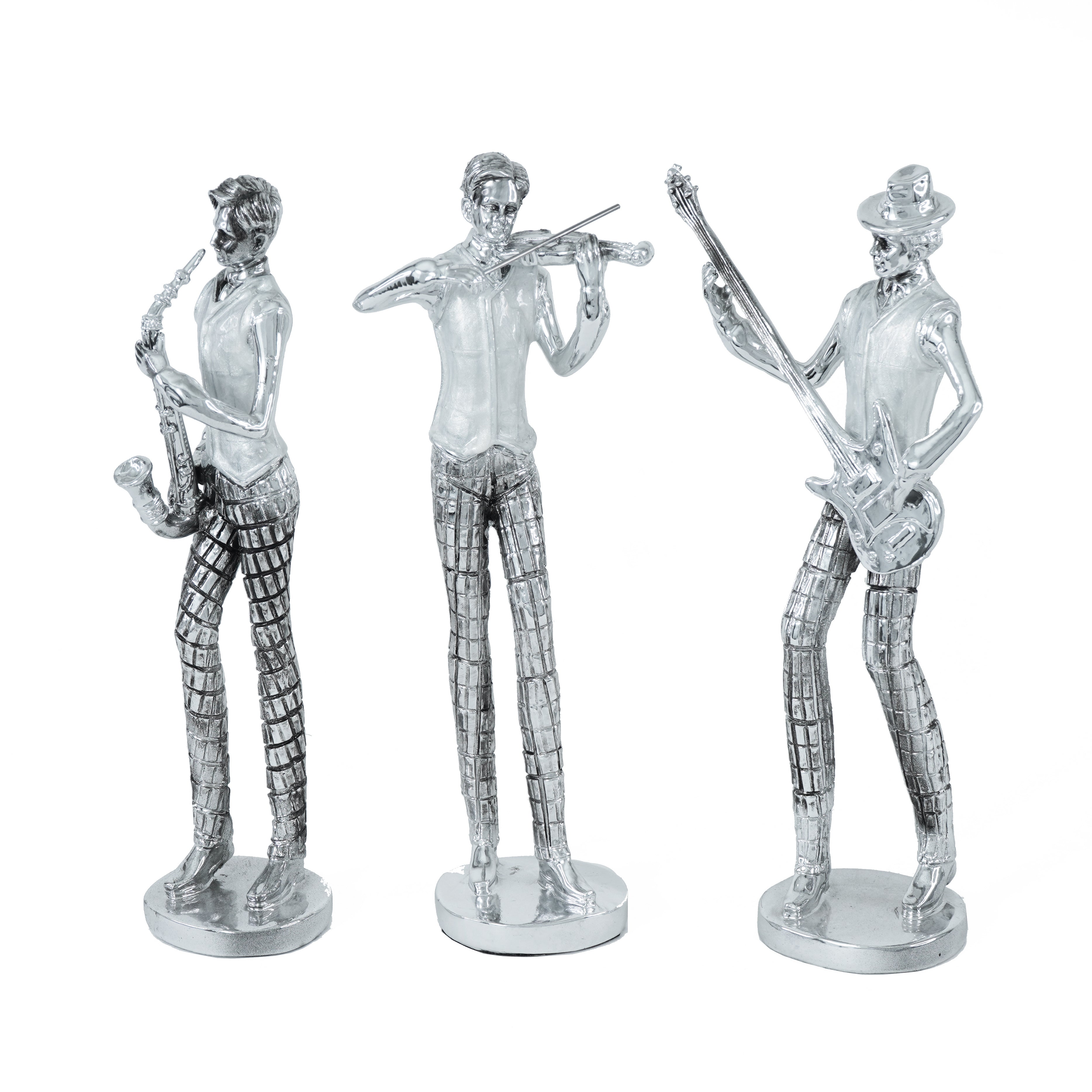 Elegantes Esculturas de Músicos de Pie Plata Poliresina Decoración Hogar Moderna