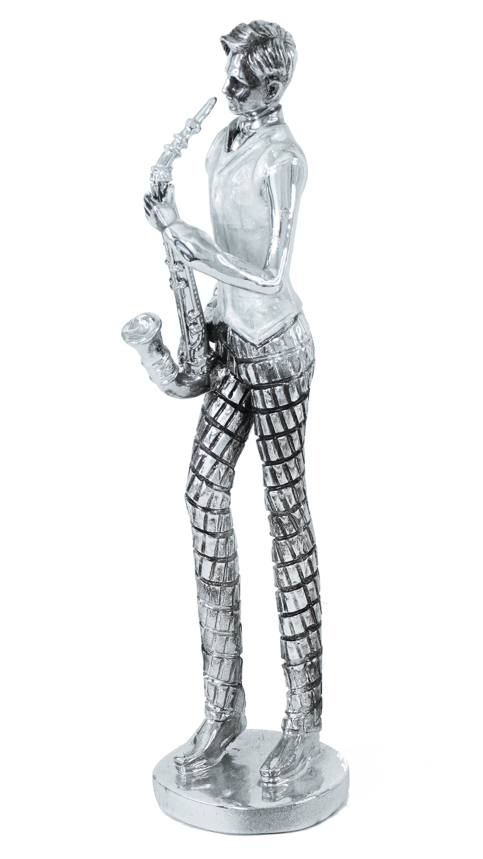 Dale a tu hogar un toque de melodía con estas elegantes esculturas de músicos. Este encantador trío, con un violinista, un saxofonista y un guitarrista, aporta un aire de sofisticación. Sus acabados en plata y blanco combinan a la perfección con cualquier decoración moderna. Colecciona una pieza o el grupo completo para crear una sinfonía visual.