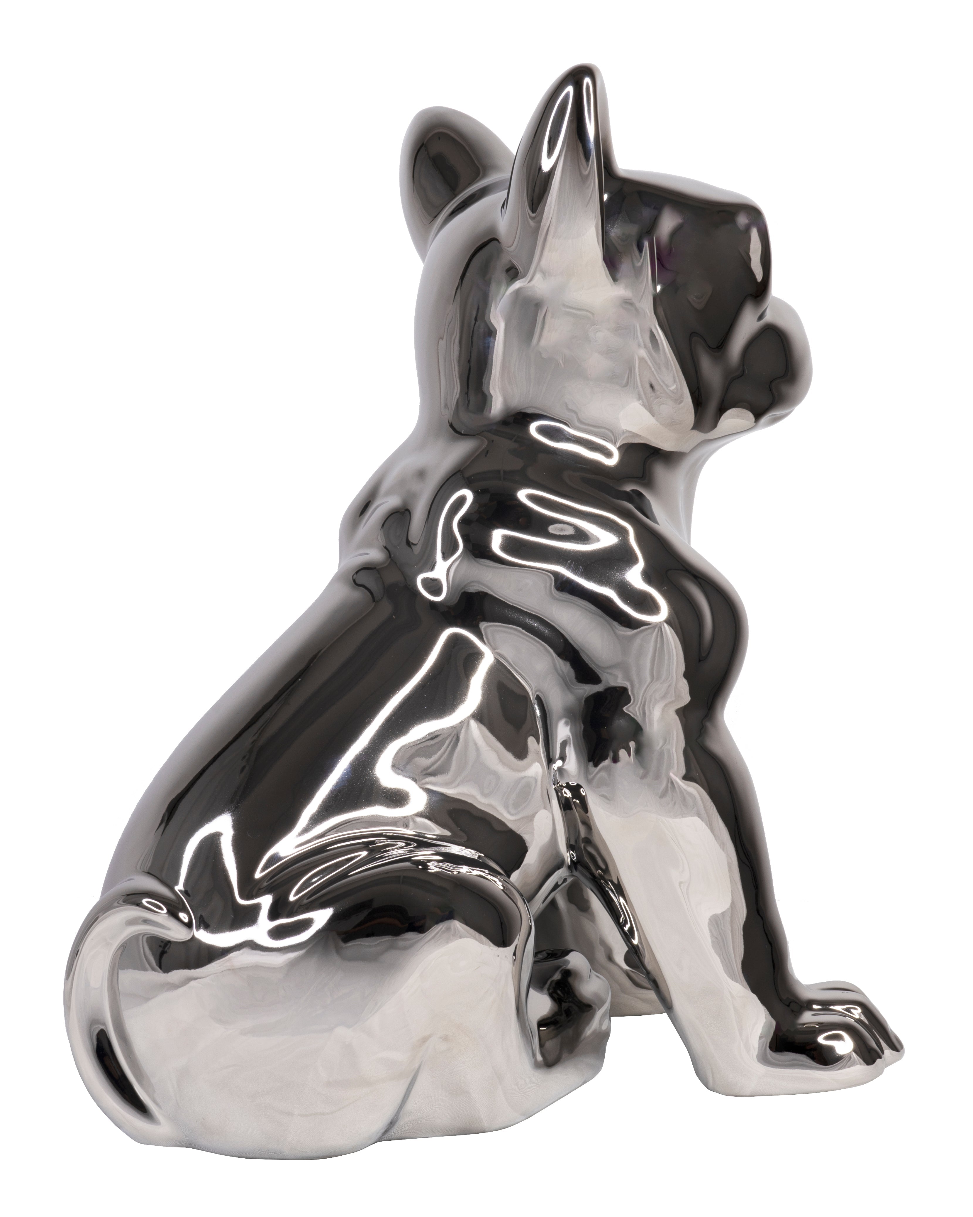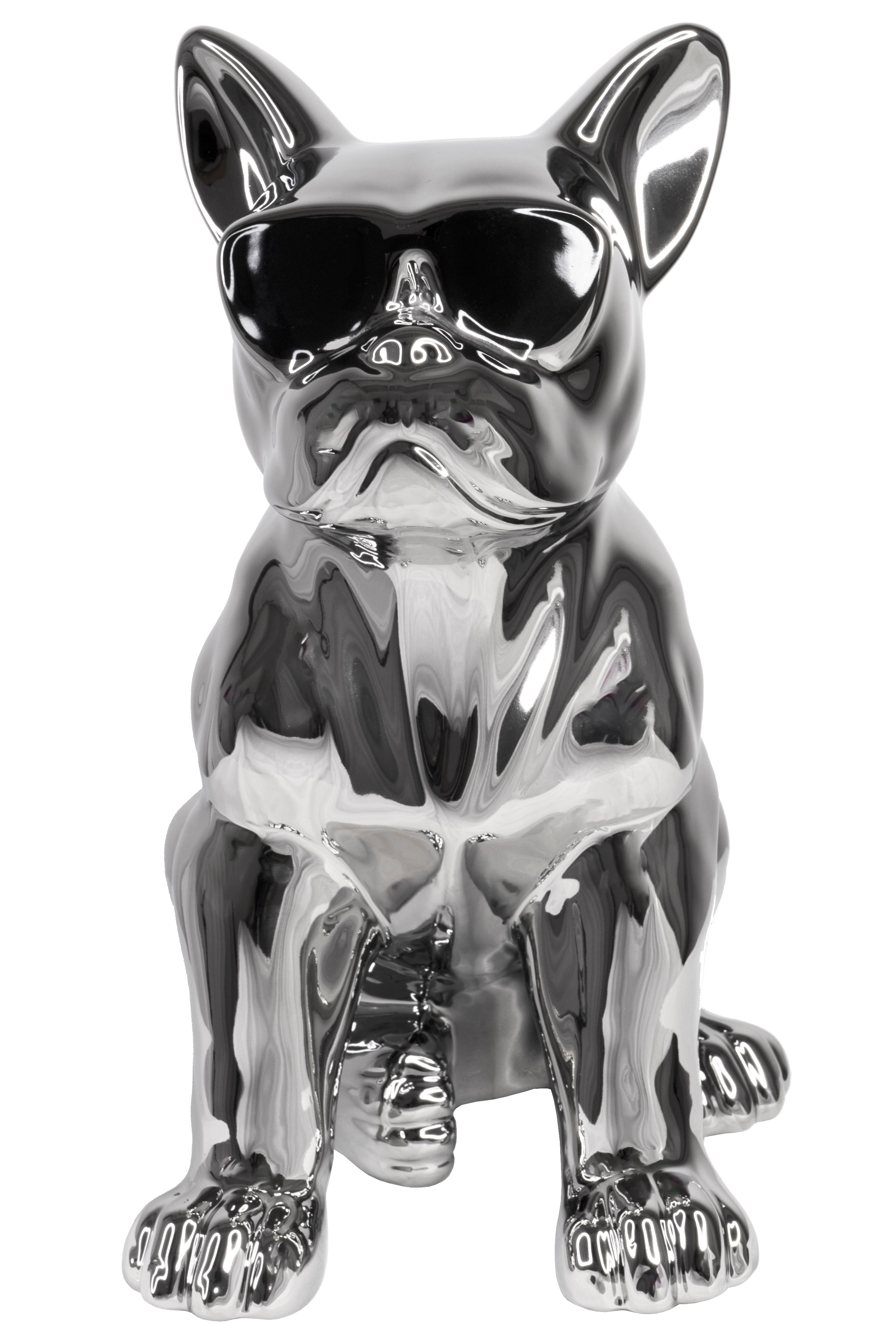 Estatua Decorativa Bulldog Sentado con Gafas de Sol Cerámica Plateada Moderna