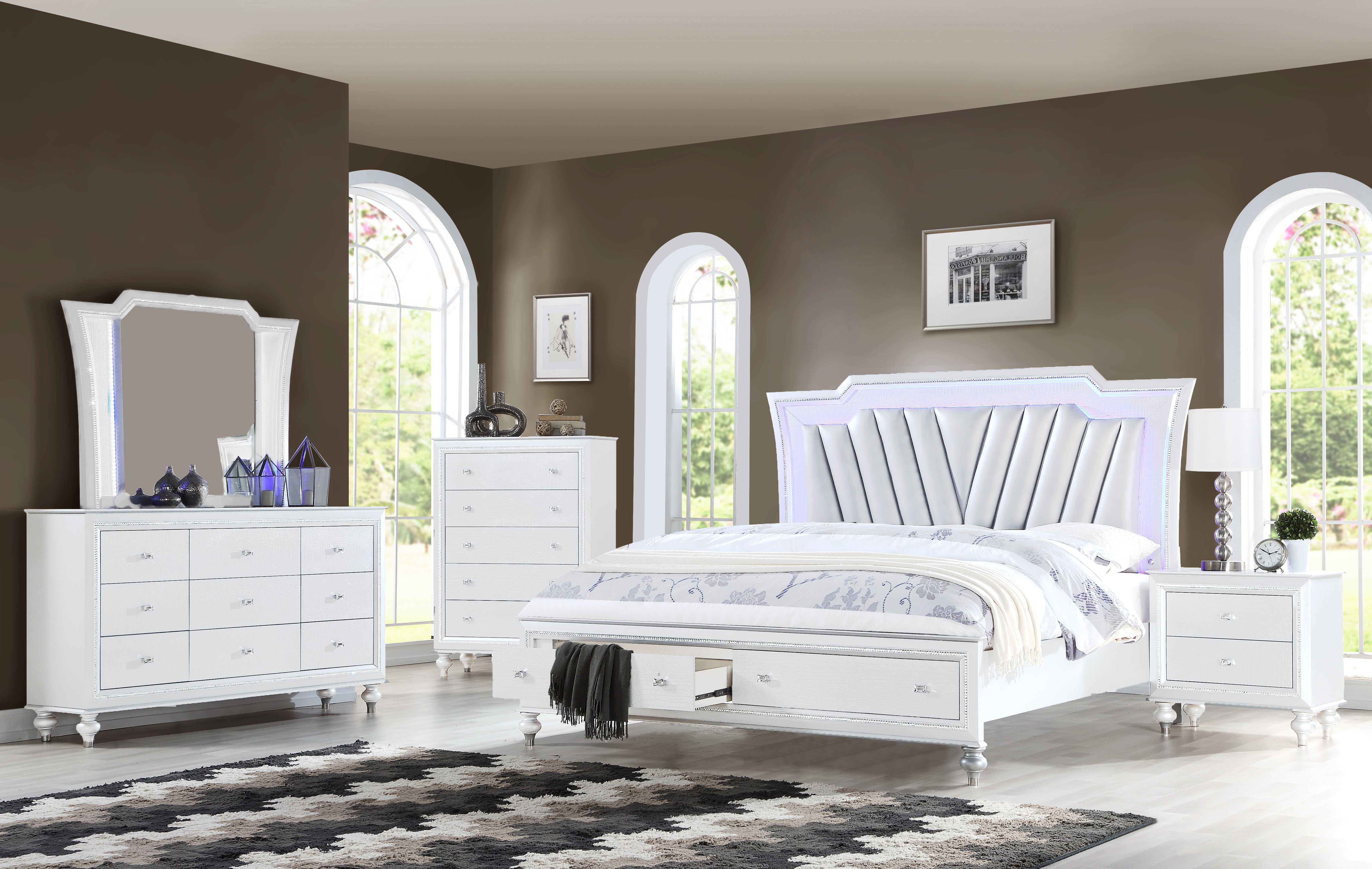 Juego Dormitorio Queen F1881 Plata Blanco Moderno Lujo Iluminación LED
