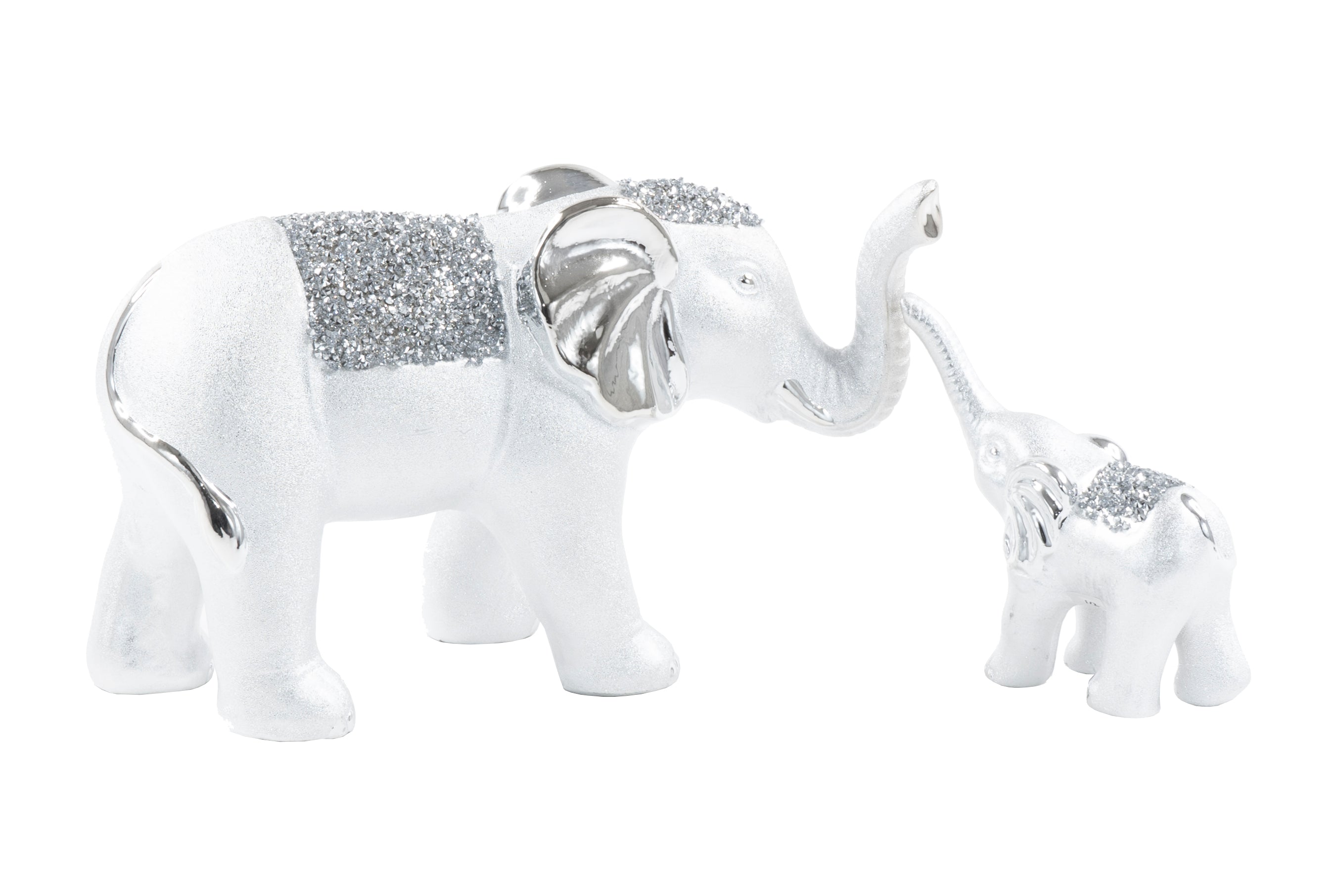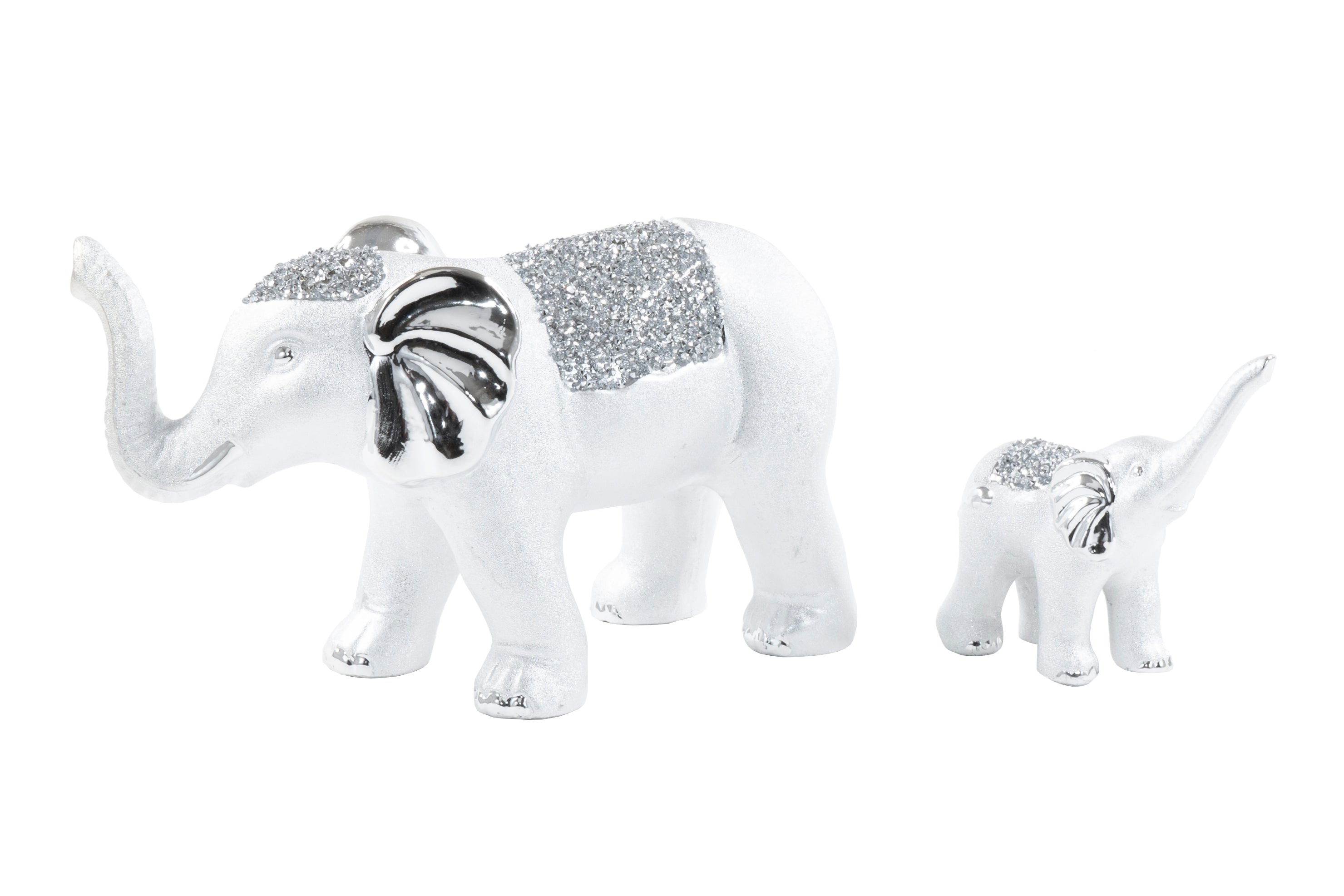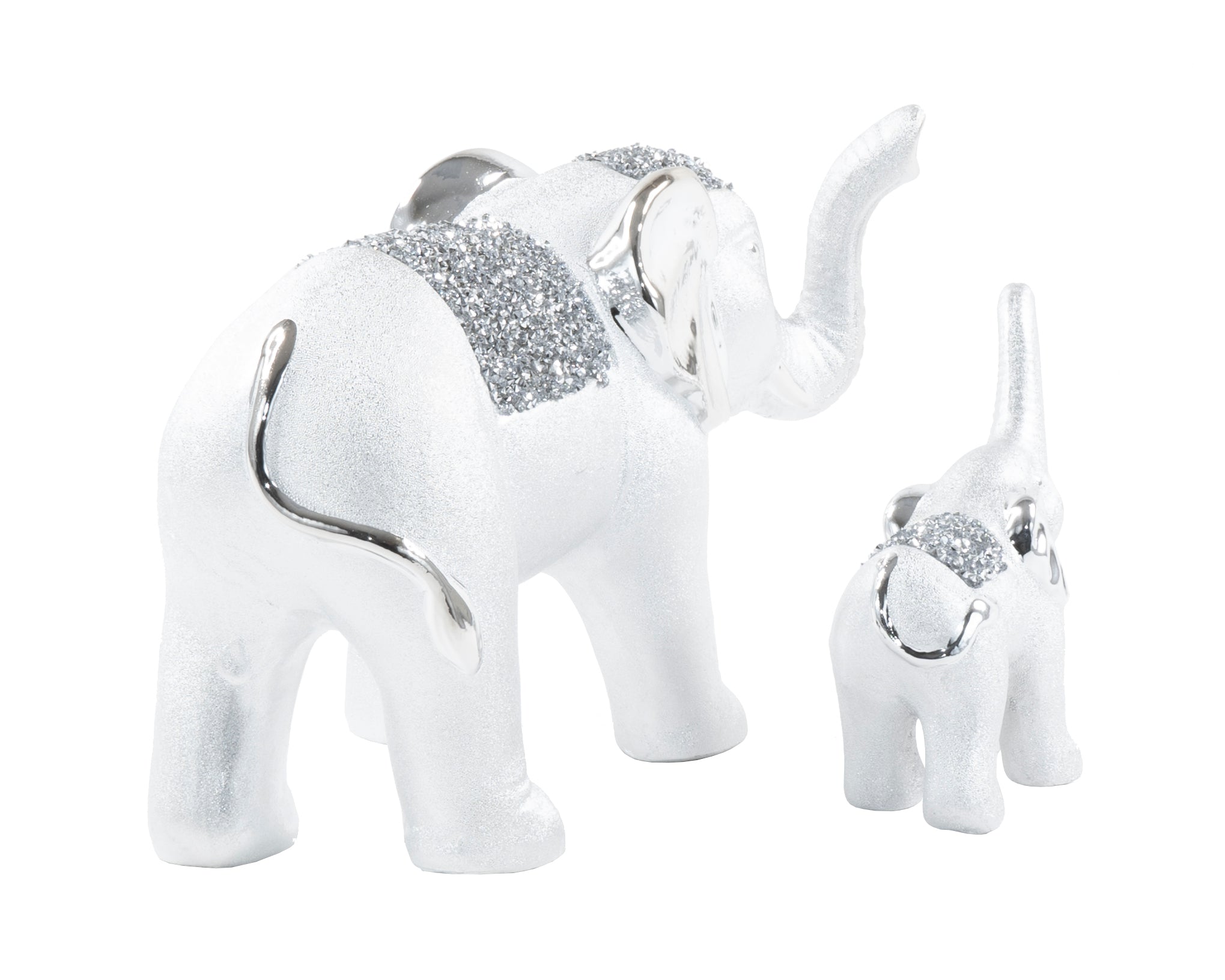 Set Decorativo Elefantes Madre y Cría Diamantados Plata Cerámica Elegante Hogar